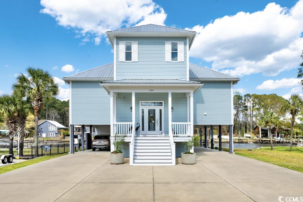 Welcome to this luxury waterfront raised-beach style 4 bedroom 3 bathroom with 2 half baths home with its own private dock and boat lift on the Intercoastal Waterway. There’s no HOA and the home was completely custom renovated with the finest home features, luxury vinyl plank flooring throughout the home with ceramic tile in the bathrooms and laundry area. Absolutely breathtaking views of the waterway from all four bedrooms, the living room and kitchen areas. This home features two master bedrooms – each complete with very large walk-in closets and tiled walk-in showers. The gourmet kitchen features quartz countertops, stainless steel appliances, custom cabinetry, large breakfast bar with an open plan design to the living room. The fourth bedroom is currently being used as an office that overlooks the water with lots of natural light and the downstairs has a spacious enclosed workshop. Don’t miss out on this truly amazing home – perfect as a permanent residence, vacation home or investment property. Minutes from Market Common, live entertainment on the waterway via boat and all the amenities Myrtle Beach has to offer – this is a one of a kind home!